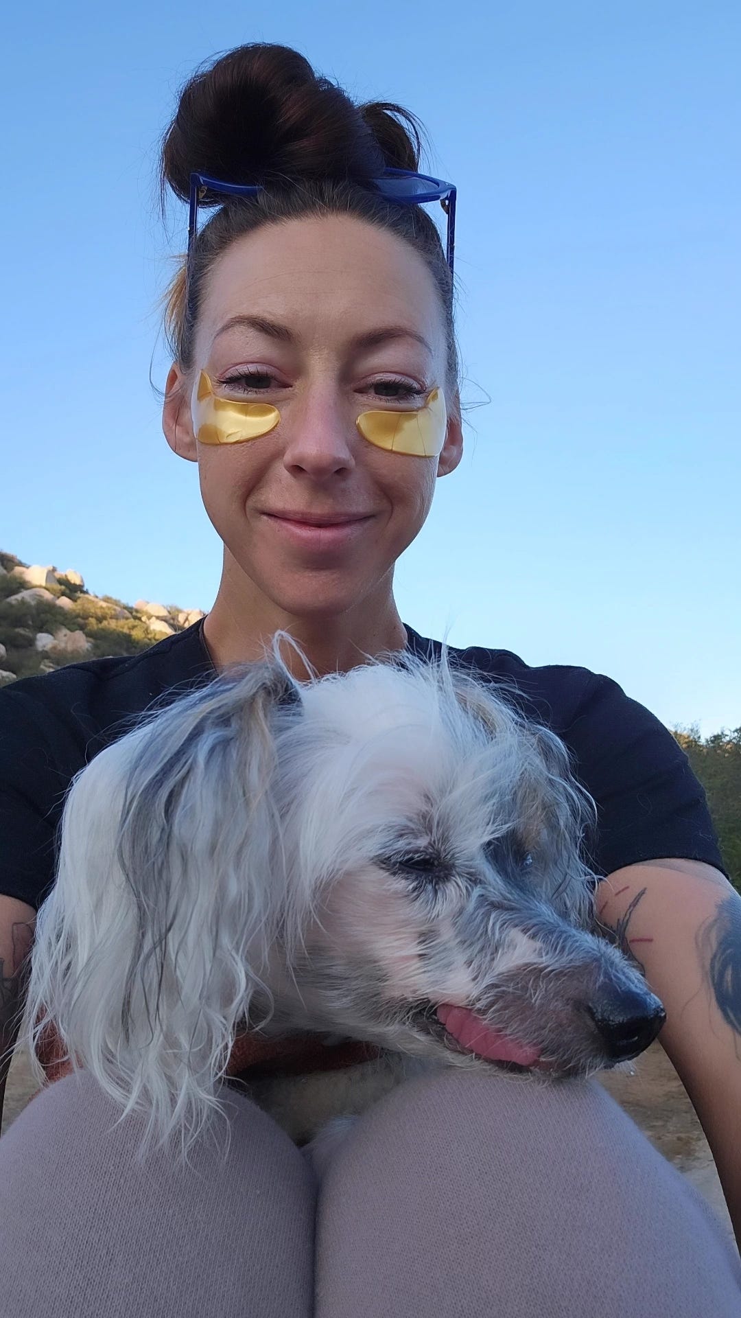 House with a yard, and a porch for her to lounge on at her discretion. She’d take turns napping on the couch and her favorite sheepskin outside during my work days. Quail and rabbit and squirrels to entertain her. We’d hike the surrounding hills, find a rock, and curl up in my lap letting the breeze blow her ears back.