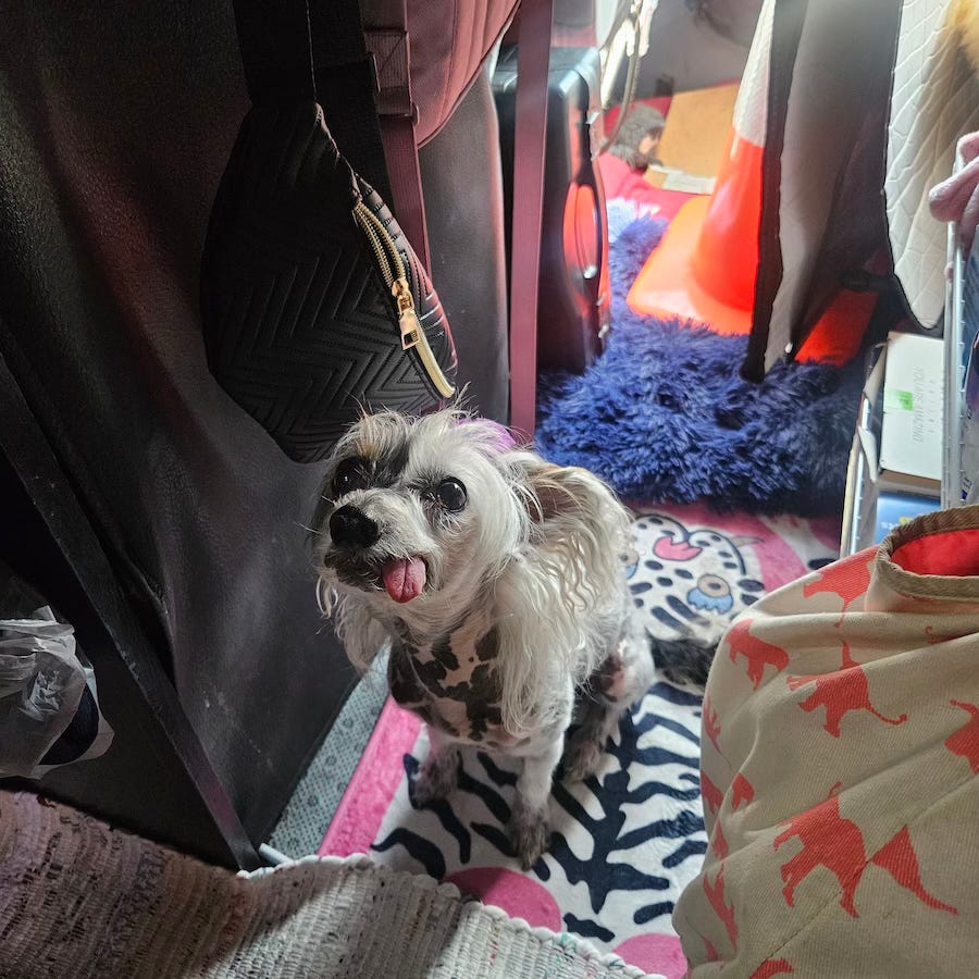 One of her last teeth became infected a month ago and she’d been declining in small ways. Scheduled dental surgery. Treated her for conjunctivitis. She was sleeping more and stopped looking forward to our daily walks. I’d carry her most of the time because she asked me to.